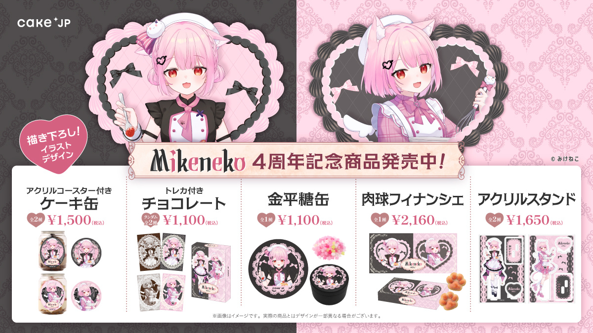 2026年2月22日にYouTube開設から4周年を迎えた、 Vtuber『みけねこ』のスイーツ&グッズ♥