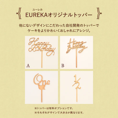 HappyBirthdayのトッパーを飾って、ご家族みんなでお楽しみください。お子様のお気に入りのフルーツを飾るのもおすすめです。