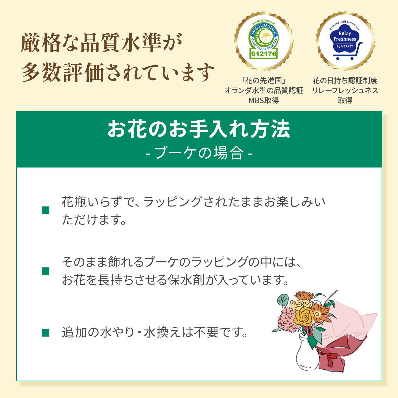 職人さんが1つ1つ丁寧に心を込めて手書きをした花束のデザインは、日頃の感謝の気持ちを伝えたいお祝いにぴったりです。