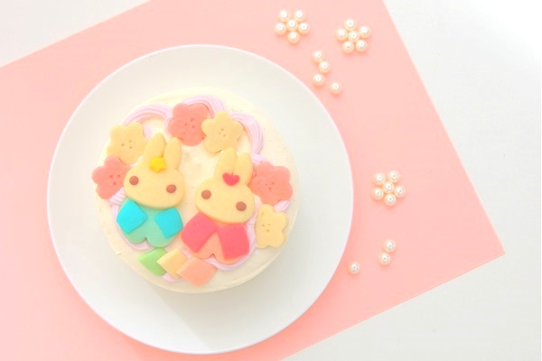 - ひなまつり2019 卵・乳除去可能 国産小麦粉と安心材料*うさぎのおひなさまケーキ 4号 12cm