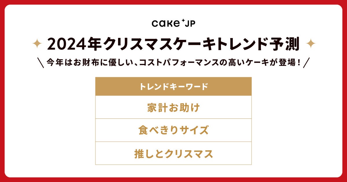 ケーキ・スイーツ専門通販サイト「Cake.jp(ケーキジェーピー)」を運営する株式会社Cake.jp(本社:東京都新宿区、代表取締役:高橋 優貴)は、2024年最新のクリスマスケーキ人気ランキングを発表いたします。