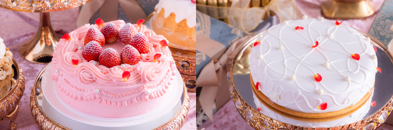 まるで絵本から飛び出してきたような、華やかなプリンセスケーキが新登場!Daisy特製のこのケーキは、素材一つひとつにこだわった、特別な一台です。ふんわり柔らかなスポンジには、こだわりの卵と風味豊かな北海道産バターを使用。しっとりとした口当たりと優しい甘さが特徴です。