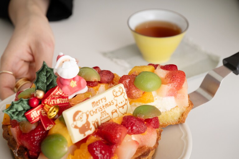 「5種類ものフルーツが食べられるのは楽しい! キラキラしたフルーツがかわいらしいので、子どもたちのクリスマスパーティでも喜ばれそう!」と茂木さん。