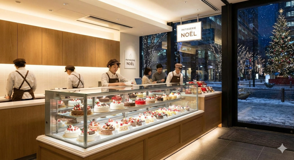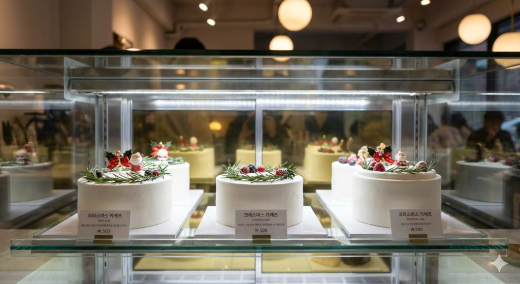 クリスマスが近づくと、一部の韓国系カフェや百貨店のデパ地下で、韓国風デザインのクリスマスケーキが販売されることがあります。実物を見て購入できる点や、タイミングによっては当日購入できる点がメリットです。