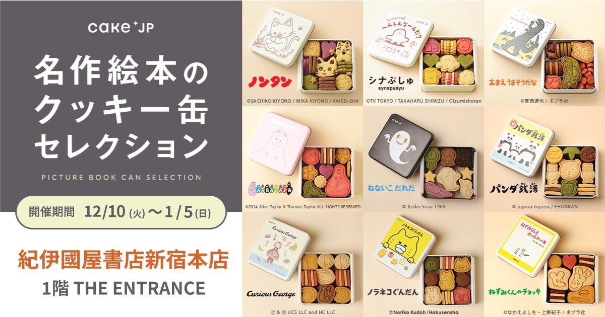 ケーキ・スイーツ専門通販サイト「Cake.jp(ケーキジェーピー)」を運営する株式会社Cake.jp(本社:東京都新宿区、代表取締役:高橋 優貴)は、2024年12月10日(火)から2025年1月5日(日)の27日間、紀伊國屋書店新宿本店にてCake.jpと大人気の絵本がコラボしたオリジナルクッキー缶を購入いただけるポップアップストア「名作絵本のクッキー缶セレクション by Cake.jp」を期間限定で開催します。