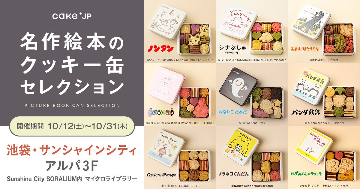 ケーキ・スイーツ専門通販サイト「Cake.jp(ケーキジェーピー)」を運営する株式会社Cake.jp(本社:東京都新宿区、代表取締役:高橋 優貴)は、10月12日(土)から10月31日(木)の20日間、池袋・サンシャインシティにてCake.jpと大人気の絵本がコラボしたオリジナルクッキー缶を購入いただけるポップアップストア「名作絵本のクッキー缶セレクション by Cake.jp」を期間限定で出店します。