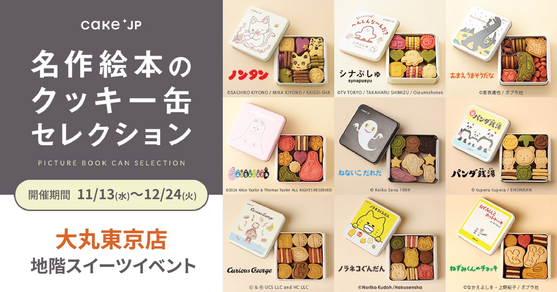ケーキ・スイーツ専門通販サイト「Cake.jp(ケーキジェーピー)」を運営する株式会社Cake.jp(本社:東京都新宿区、代表取締役:高橋 優貴)は、11月13日(水)から12月24日(火)の42日間、大丸東京店にてCake.jpと大人気の絵本がコラボしたオリジナルクッキー缶を購入いただけるポップアップストア「名作絵本のクッキー缶セレクション by Cake.jp」を期間限定で出店します。