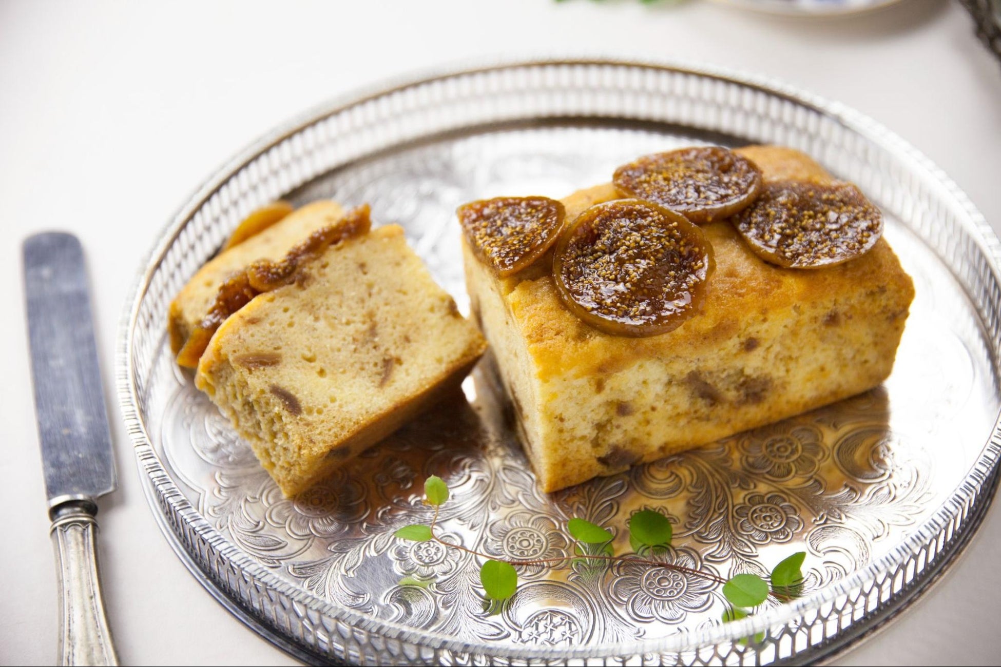 大粒の干しイチジクを贅沢に選んで赤ワインと隠し味に紅茶を使用し、コトコト とじっくり煮込み、パウンドケーキの生地と一緒に閉じ込めて焼き上げました。プチプチしたいちじくの食感がたっぷり楽しめます。生地には、北海道産バターと契約農家「ゆきはるか」の国産小麦をふんだんに使い、自然の恵みたっぷりの贅沢なケーキです。気取らず、普段の美味しいおやつに、ご家族で召し上がっていただきたいケーキです。