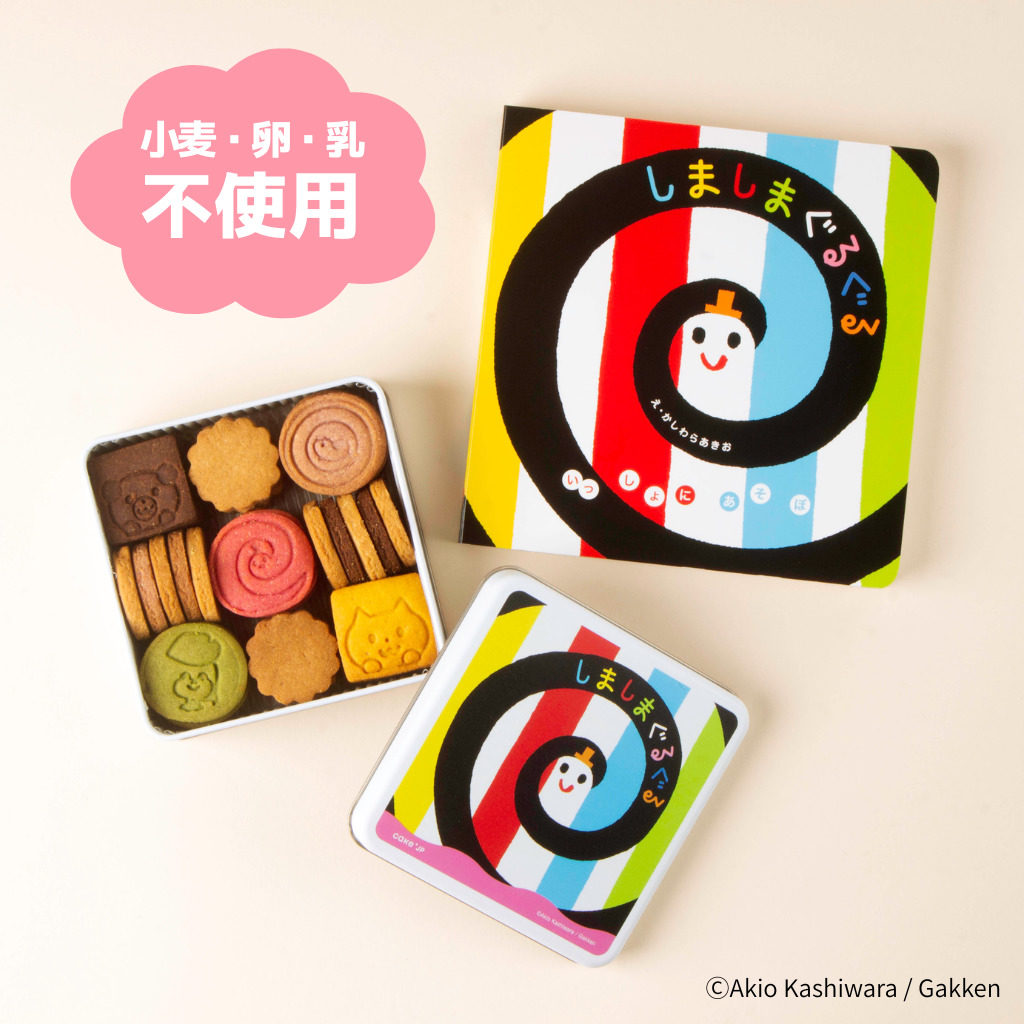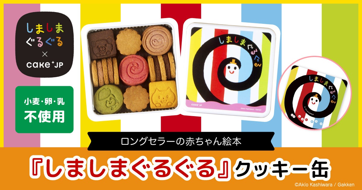 ケーキ・スイーツ専門通販サイト「Cake.jp(ケーキジェーピー)」を運営する株式会社Cake.jp(本社:東京都新宿区、代表取締役:高橋 優貴)は、シリーズ累計350万部、0歳赤ちゃん向け絵本として大人気の「しましまぐるぐる」(かしわらあきお(作・絵)/刊:Gakken)とコラボレーションしたオリジナルクッキー缶を、2026年4月23日(木)より販売します。