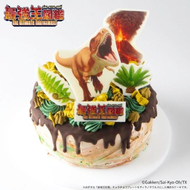 ホールケーキに、お好きな「最強王図鑑」キャラクターのチョコプレートを1枚選択可能。