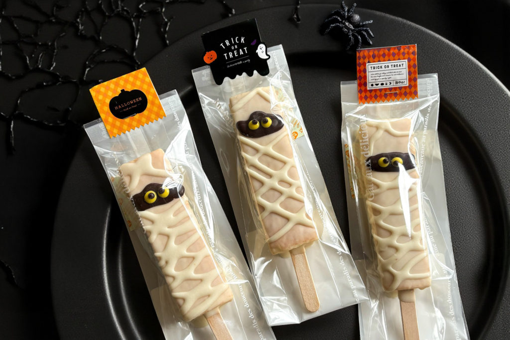 まるでお菓子のアイスキャンディのようにスティックに刺したバウムクーヘンを、カラフルにデコレーション。カボチャやおばけなどのハロウィンモチーフで飾り付けた様子は、まさに“キャンディみたい!”とSNSでも話題になりそうです。