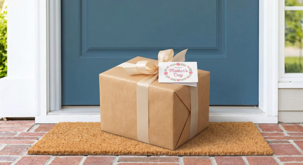 美しいギフトボックスが届いた瞬間のお母さんの驚きと笑顔。ネット通販は、ただ商品を届けるだけでなく「サプライズという体験」も一緒に届けます。