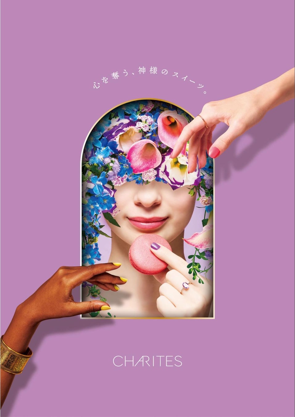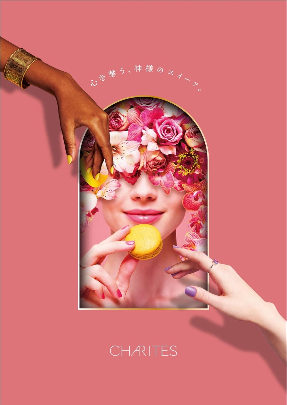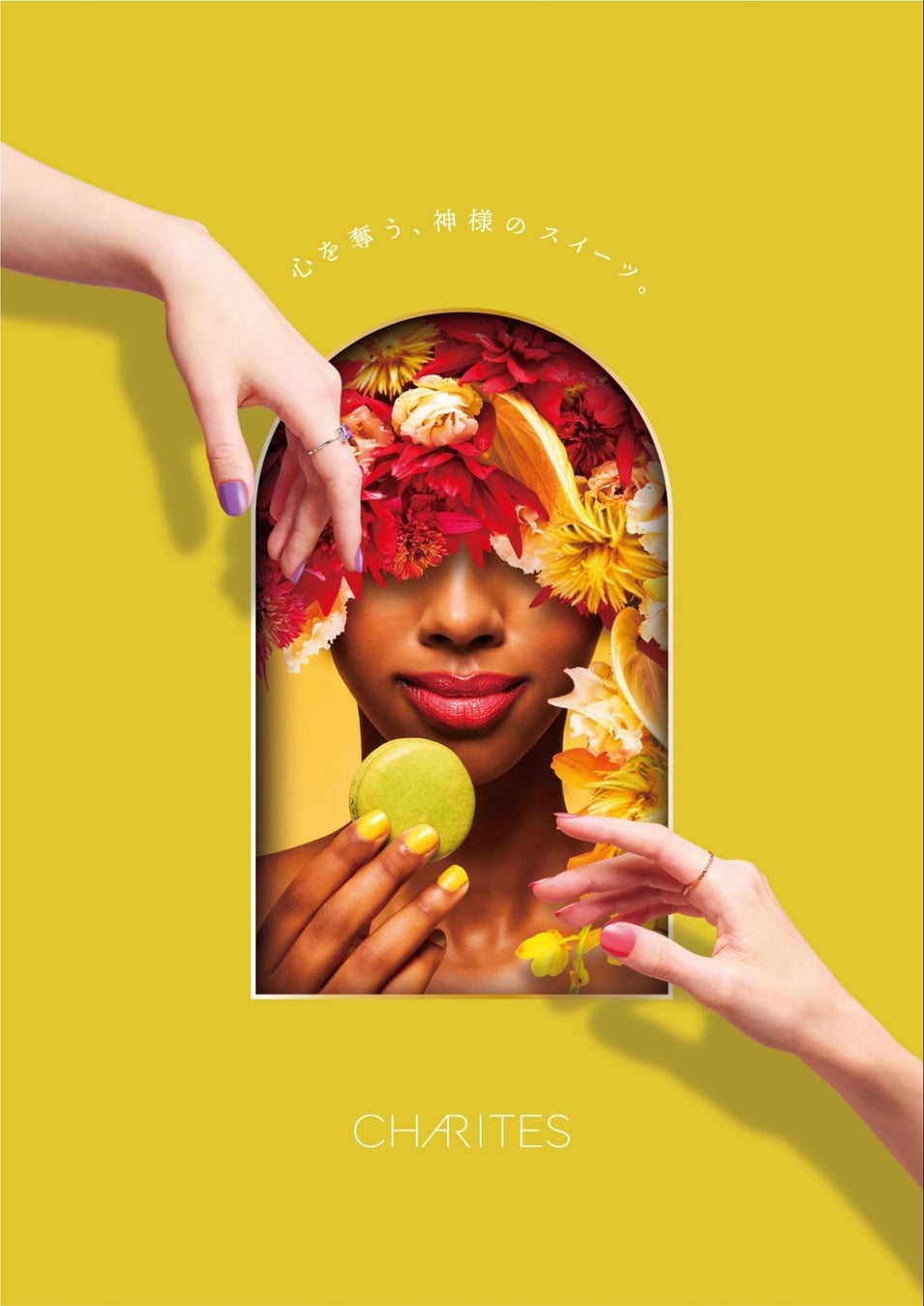彩りを司る女神の三姉妹がわいわいとお菓子を取り合う、楽しくも美しい世界観を映すブランド。彼女たちが過ごす花咲く庭のような鮮やかなボックスは、実際の花の写真を加工したデザイン。花を贈る感覚で差し上げられるお菓子は、おしゃれやトレンドに敏感な方への手土産にもぴったりです。女神の手がプリントされたショッパーに美しいボックスを入れると、女神たちがお菓子を取り合うパッケージの仕掛けもユニークです。