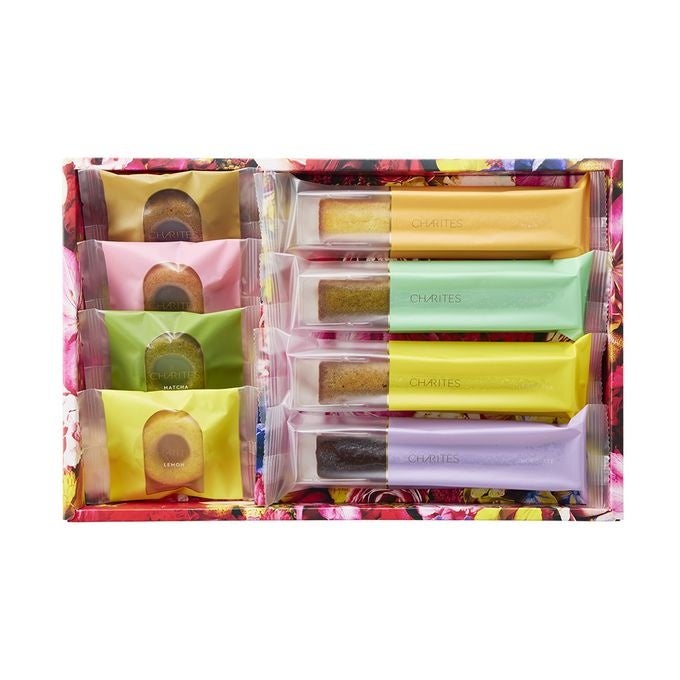 お花のようにカラフルなジュレを流した4種のエンゼル型フィナンシェとスティックケーキのアソート「ladyofthegarden<レディオブザガーデン>」は、パッケージに負けず、お菓子のフレーバーやカラーも鮮やか。