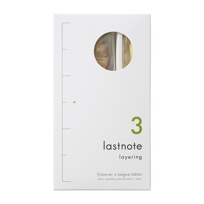 サクサクと繊細に崩れ、香ばしさが鼻を抜けていくラングバトン「topnote<トップノート>」や、ラングドシャでチョコをサンドした「middlenote<ミドルノート>」など、香り高いラングドシャやフィナンシェなどが揃います。レイヤリングはフィナンシェとラングバトンを詰め合わせました。