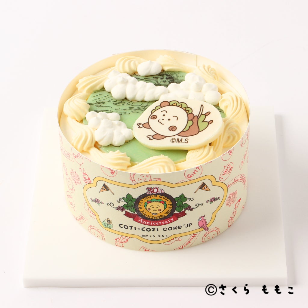 コジコジの漫画原作30周年を記念した特別なアニバーサリーケーキは、コジコジが空を飛んでいるようなデザインで、側面は30周年限定のオリジナルデザインフィルムで彩りました。特別な日のお祝いにぴったりな、見ても食べても楽しめるケーキです。