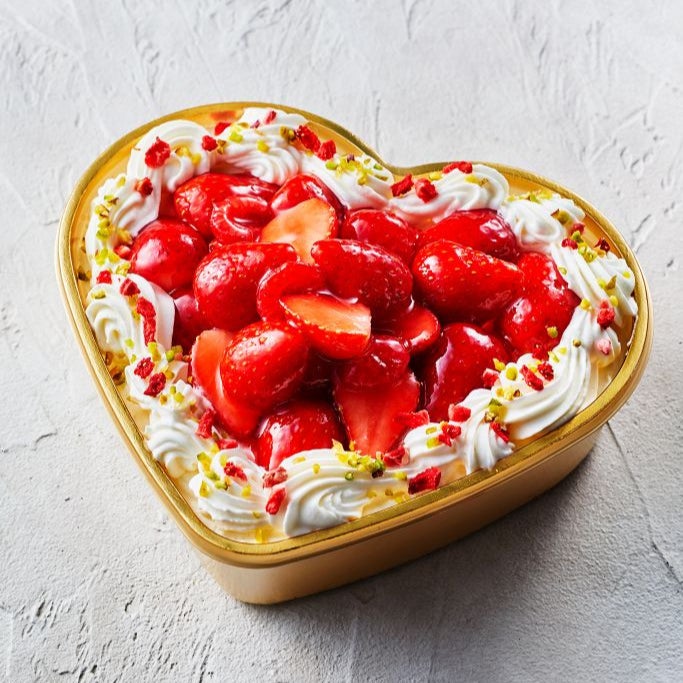 華やかで繊細なハート型のケーキは、オンライン限定で販売。特別な誕生日や記念日を彩る逸品です。この機会にぜひご賞味ください。