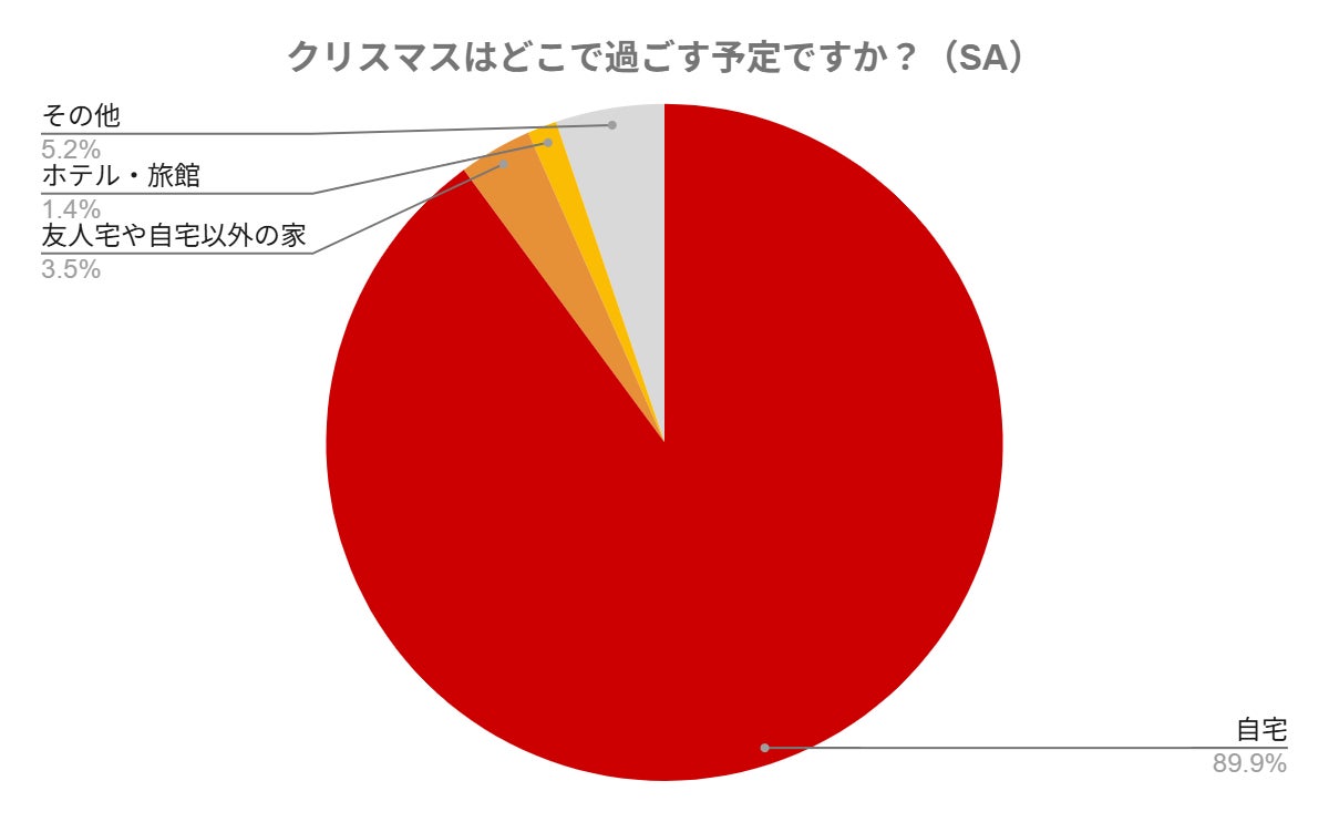 - 昨年に続き、自宅や友人宅での「おうちクリスマスパーティ」派が約89%