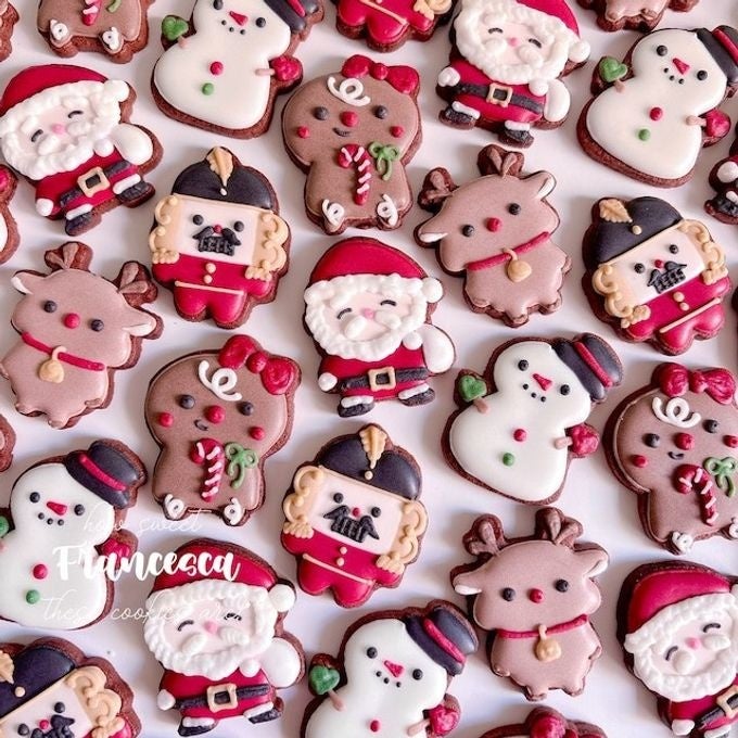 クリスマスの主役たち、サンタクロース・トナカイ・ジンジャーブレッドマン・くるみ割り人形・雪だるまが各1点ずつ入ったアイシングクッキーセットです。
