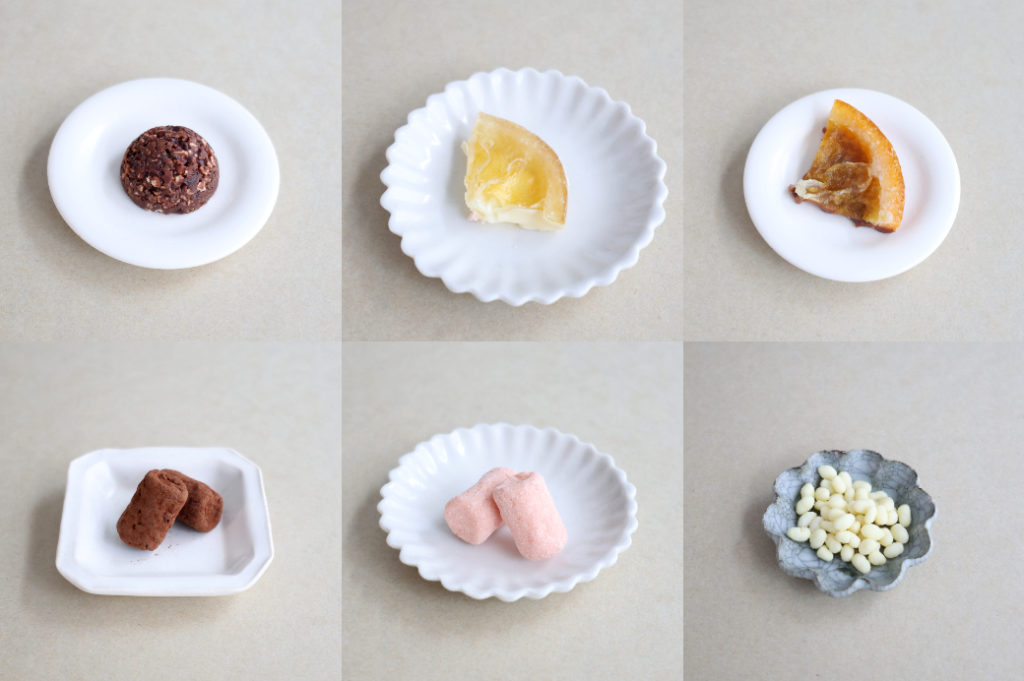 7. 日向夏ショコラ & 8. 清見オレンジショコラ 国産の日向夏と清見オレンジを自家製シュガーマリネにし、それぞれに合うチョコでディップ。皮ごとのほろ苦い旨みが絶妙です。