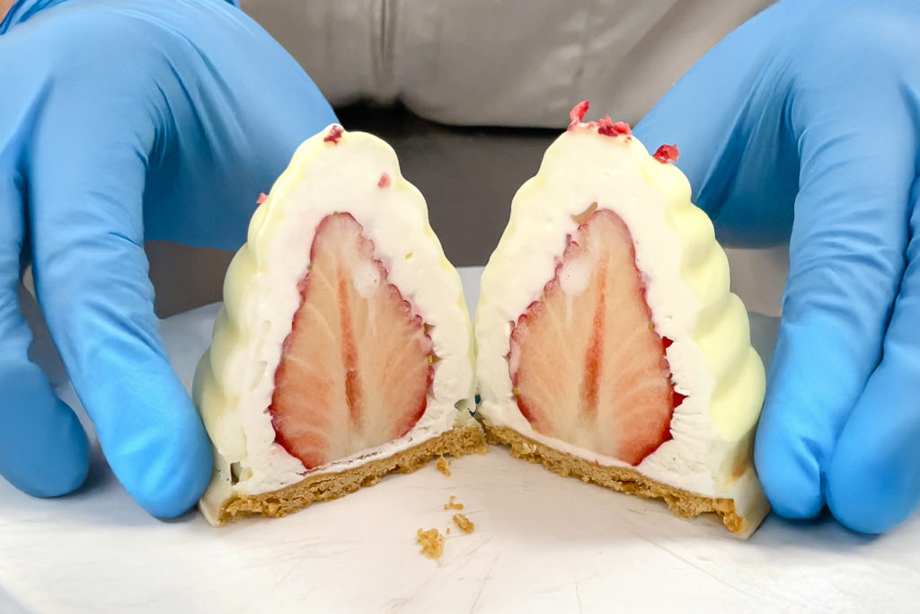 ただでさえ流通量の少ない3Lサイズのとちおとめの中から、さらに「大粒でも味がぼやけていない」極上品だけを選別する作業は困難を極めます。さらに、繊細なシャンティークリームの泡立てから、ホワイトチョコの極薄コーティングまで、すべてが熟練の職人による手作業で行われます。