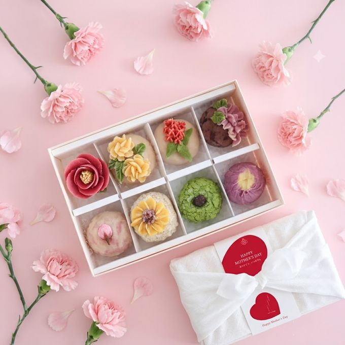 伝統に新しい彩りを添えた美しい和菓子のプレゼント。お茶の時間を優雅に彩る上品な甘さは、母の日の贈り物に最適です。