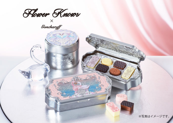 2026年の大きな話題となっているのが、中国コスメブランド「Flower Knows(フラワーノーズ)」とのコラボレーションです。コスメのような繊細で乙女心をくすぐるデザイン缶に、ゴンチャロフのチョコレートを詰め合わせた異色のコラボです。