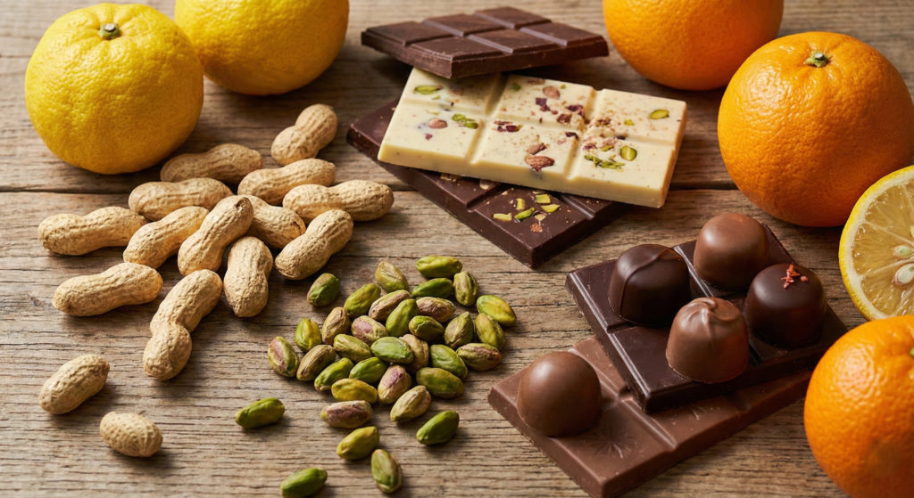 トレンド2:柑橘ピールとチョコレートの融合 PART3の会期を中心に、日本各地の柑橘(ゆず、伊予柑、ベルガモットなど)のピール(皮)を使ったオランジェットやタブレットが特集されます。爽やかな酸味と苦味が、濃厚なチョコレートの味わいを引き立てます。