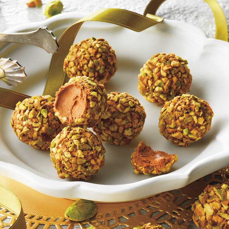 「ナッツの女王」と呼ばれるピスタチオを贅沢に使ったトリュフです。