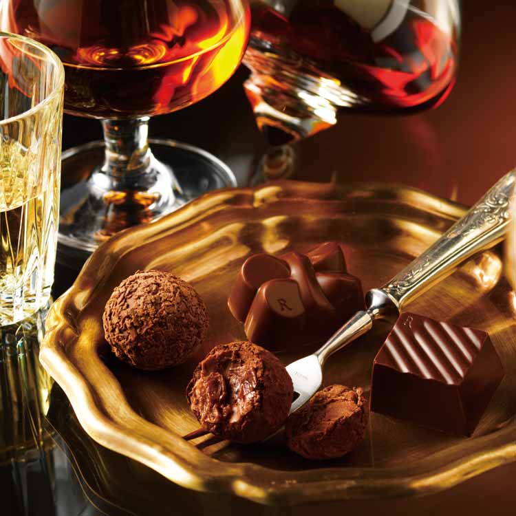 - 世界中の名酒を使用したボンボンショコラの詰め合わせです。ヘネシーX.O(コニャック)、マイヤーズラム、コアントローなど、誰もが知る銘酒のガナッシュがチョコレートに包まれています。