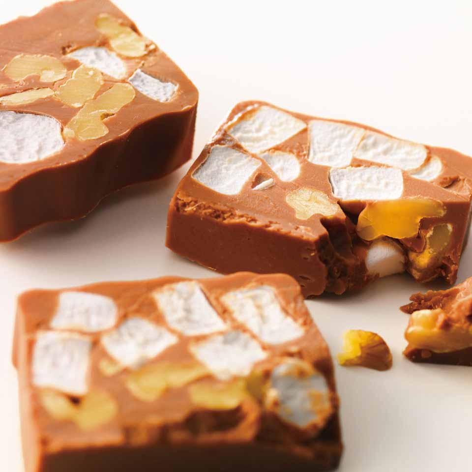 - チョコの固さ、マシュマロの弾力、クルミのカリカリ感。この3つの食感が混ざり合うユニークな体験ができます。