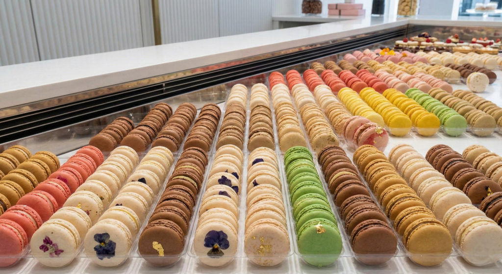 - 「進化系マカロン」の定着: 韓国発の「トゥンカロン(太っちょマカロン)」のように、クリームがたっぷり挟まれたり、フルーツがトッピングされたりしたデコラティブなマカロンも引き続き人気。見た目のインパクトを重視したい場合におすすめです。