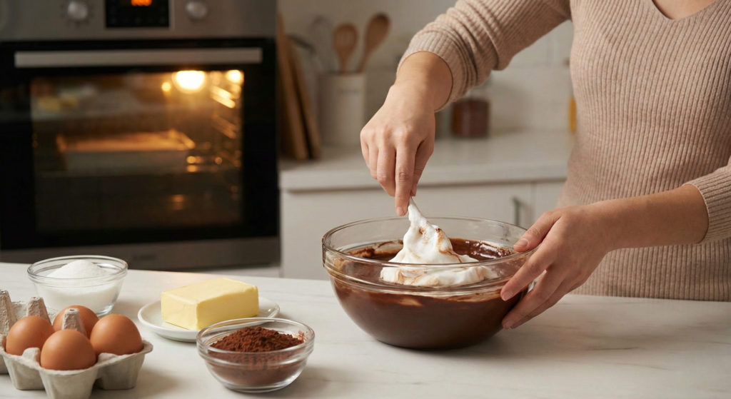 - コツ: メレンゲの泡を潰さないように混ぜるのが唯一のポイントです。