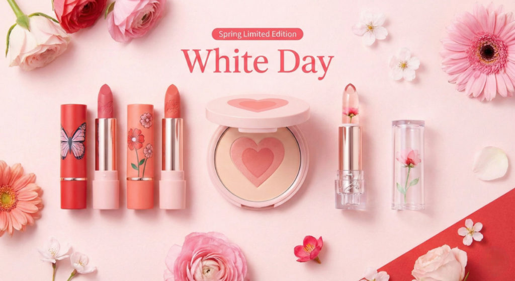 スイーツだけでなく、春の新作コスメをホワイトデーに贈る、あるいは自分に贈るという選択肢が定着しました。2026年は特に、バレンタインからホワイトデーシーズンにかけて、ハートや蝶をモチーフにした限定デザインのリップやチークが多数リリースされており、スイーツよりもカロリーを気にせず楽しめるギフトとして人気が沸騰しています。