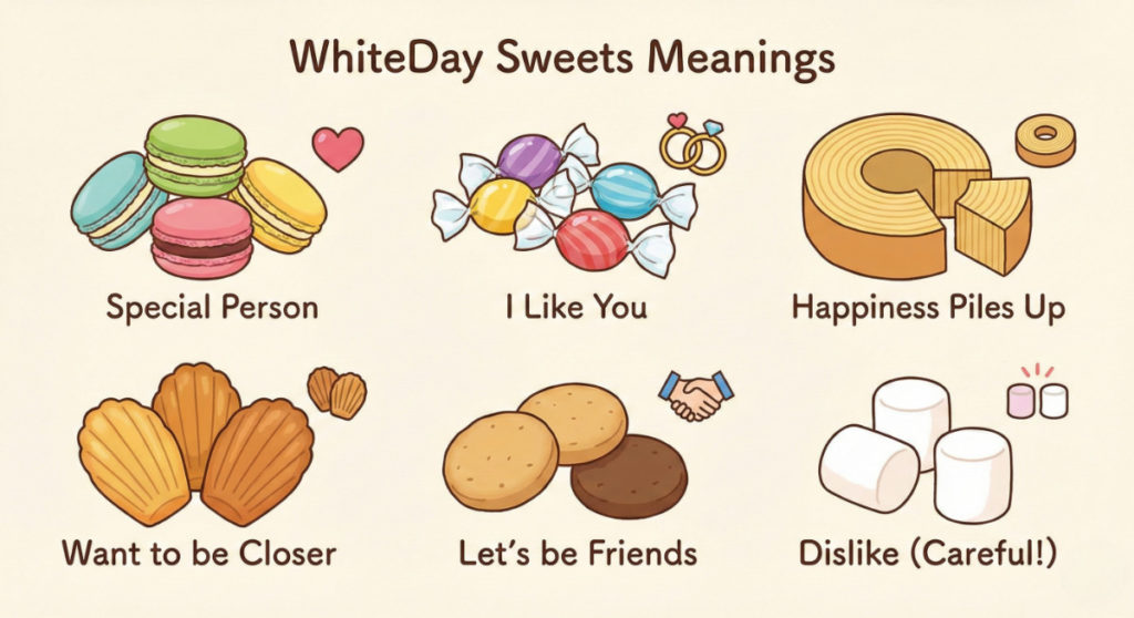 ホワイトデーのお返しには、古くからお菓子ごとに「隠された意味」があると言われています。特に本命や大切な相手には、誤解を招かないよう意味を知った上で選ぶ、あるいはメッセージカードで補足することが重要です。