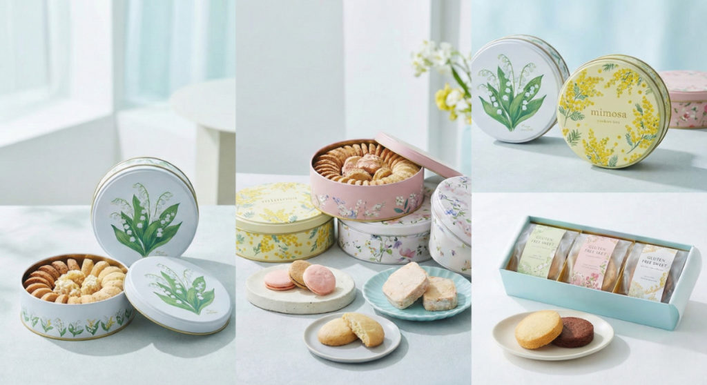 - 食べ終わった後も使える美しいデザイン缶が引き続き大人気。特に「スズラン」や「ミモザ」など春の花をあしらったデザインや、レトロモダンな缶が指名買いされています。