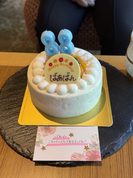 母の米寿のお祝いに、泊まっているホテルのデザートの時に出してもらえるように手配してもらいました。