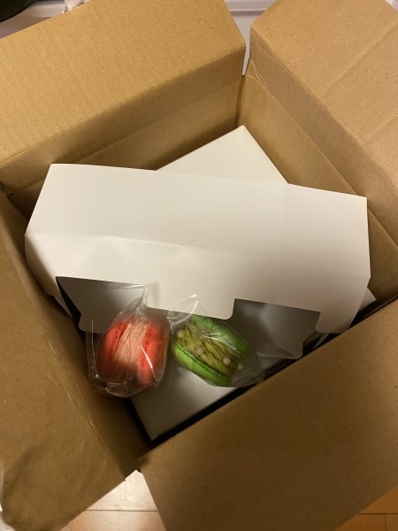 誕生日ケーキはこのケーキとのリクエストで購入しました。味はとても美味しく家族全員が大変満足しました。同時に購入したトゥンカロンも美味しかったです。が、ケーキだけを購入したかったのに、オプションを選択しないと次に進めないシステムで、仕方なくトゥンカロン3個を選択しました。美味しかったですが買わされた感が強いです。最も残念だったのは梱包です。写真の通り緩衝材が入っておらずダンボールを開けたらトゥンカロンが小箱から飛び出し散乱していました。トゥンカロン用の小箱を横向きに入れて高さが出た分、ダンボールのフタ部分を折り曲げ高さを出して調整したようです。配送業者が上に重いもの乗せてこのようになった、と推測できます。トゥンカロン用の小箱は大きすぎで、ダンボールは小さすぎだった、緩衝材を入れていれば上からの圧力には耐えられた、と思います。個人の方に箱の種類を在庫させるのは大変でしょうから、せめて緩衝材を入れて商品を守る意識を持ってもらいたいと思いあえて言わせてもらいました。