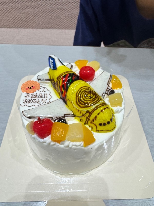 息子の5歳の誕生日からこちらのデザインケーキを発注しています。5歳は山手線、6歳は湘南新宿ライン、そして7歳の今回は息子が鉄道から航空オタクに変わり、ANAのスターウォーズデザイン機を発注しました。難しい発注内容にも関わらず、丁寧な仕上がりで、息子も大変喜んでました。食べるのがもったいなかったです。本当にありがとうございました。また来年もよろしくお願いします。