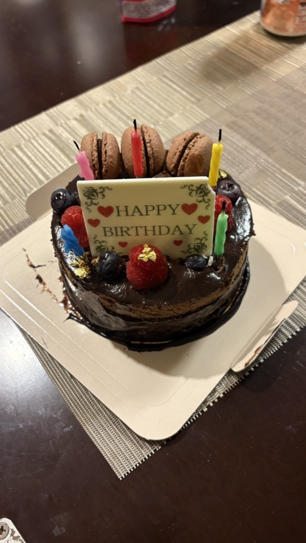 ケーキは凄く美味しかったとのことで、良かったのですが、周りのフィルムを剥がすタイミングが悪く、周りのチョコのコーティングが剥げてしまっていました。