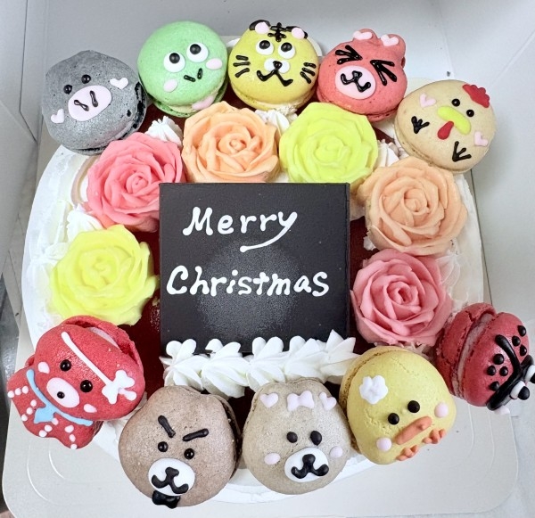 クリスマスケーキで初めて購入しました。マカロンは食べる寸前に載せた方がびちゃびちゃにならないと思いました。マカロンは凄く可愛いくて美味しかったです。バラの花が家族、皆さん不評だったので次回からはバラよりマカロンを増やして、また購入させて頂きたいです。