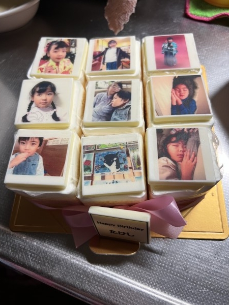 子どもたちの思い出の写真をチョコにしてもらって子どもが自分で乗せるー!と喜んでいました。