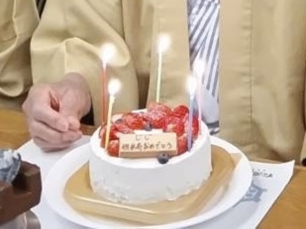 父の米寿のお祝い旅行のクライマックスにケーキを出して頂きました