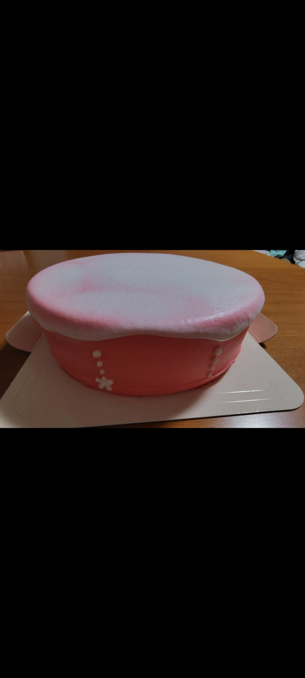 解凍後、上のクリームがマダラなピンクになりました。