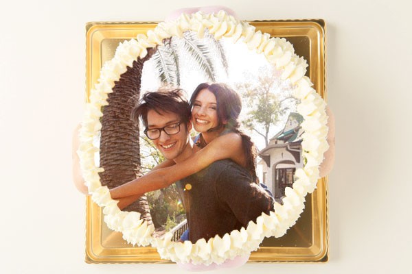 彼氏の誕生日ケーキを頼みました。二人で写った写真…