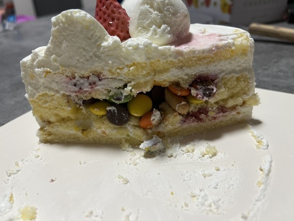 宅配で来るので覚悟はしていましたが、上のいちごが全て崩れていました。直すのに生クリームを買い直しましたが、味も美味しく子供達も喜んでくれたので良かったです。中にはマーブルチョコなど色々入っていました。