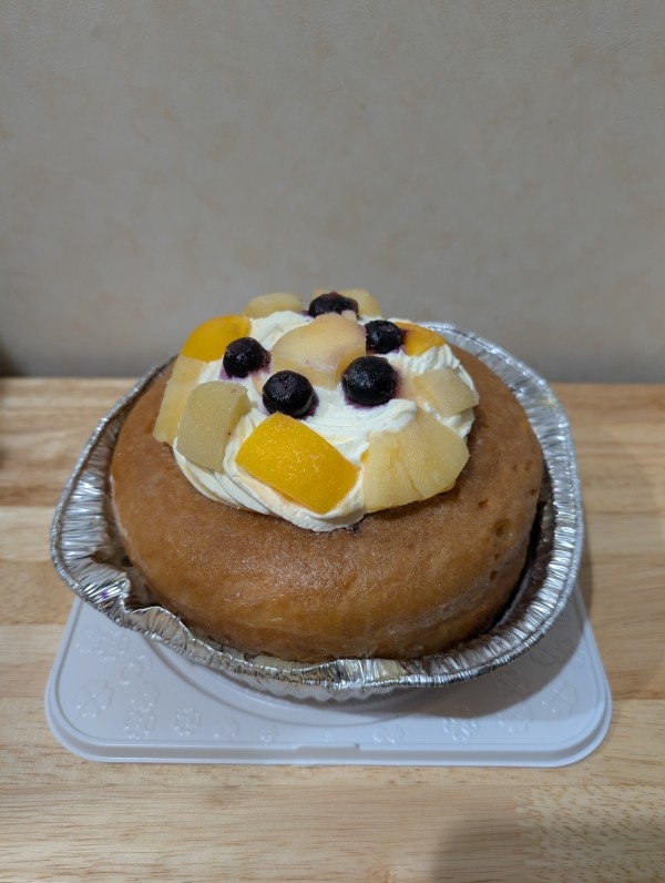 キメがあらめの生地にたっぷりのラム酒シロップが容器の底にあふれるほどしみしみで、フル―ツとクリ―ムで味変もできて美味しかったです。解凍してから切り分けるとクリ―ムが崩れて、底のラム酒シロップと混ざってしまうのはちょっと残念でしたが、久しぶりに美味しいサバランを食べました。