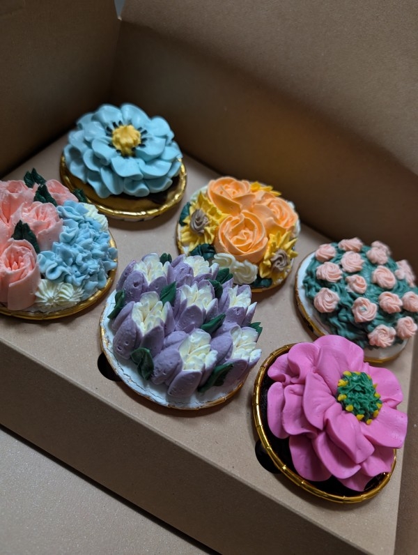 お姉さんの誕生日のために購入。なかなかこのような華やかな海外仕様のカップケーキが見つからないため、目にした瞬間に即決意。冷凍で配達してもらい、冷蔵庫で数時間解凍して食べました。配達中の崩れが全くなく、迫力のある繊細なデザインが大ウケでした!バタークリームのデコレーションは確かに甘かったですが、カップケーキとの相性が抜群でちょうどよかったです。チョコ味、チーズケーキ味、プレーン味の生地もめちゃくちゃ美味しかったです。最高の誕生日サプライズになりました!