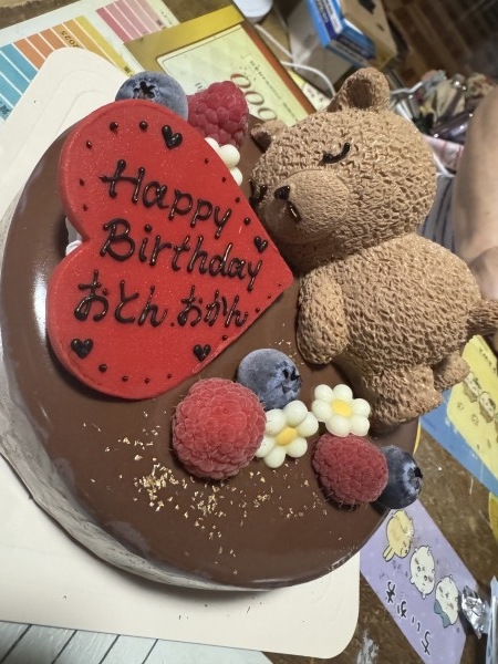 家族のお誕生日に選びました。チョコレートはまろやかにブルーベリーのアクセントがあっててペロリと食べてしましました。との事です。残念なのは食べるのに、寝そべってるクマちゃんを起こすのがかわいそうだったとの事です。