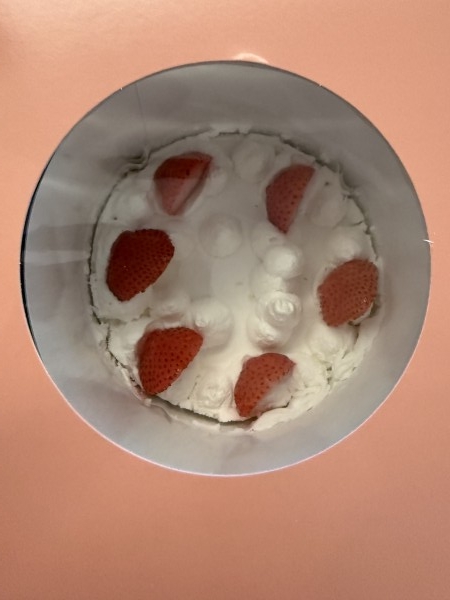 解凍時間が長くなってしまったからだとは思いますが、いちごのまわりのクリームがピンク色になってしまったのといちごがふにゃふにゃになってしまったのとスポンジがパサパサになってしまったのは少し残念でした。